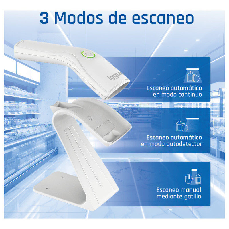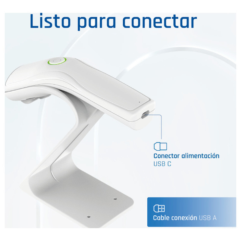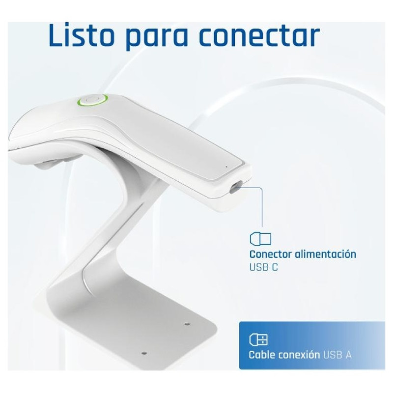 | Tipo | Lector código barras 2D USB botón soporte blanco |