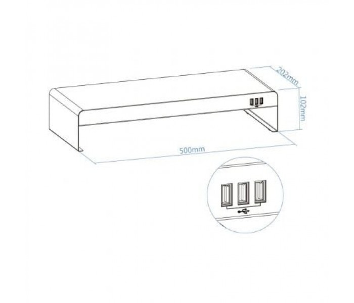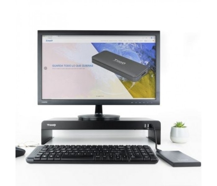 TooQ TQMR024 es un soporte elevador ,para monitor/portátil con 3 puertos USB Negro. Caraterísticas  , Soporte elevador de gran calidad y robustez Dispone de 3 puertos USB 2.0 Especificaciones Soporte de gran calidad y robustez Incorpora almohadillas de silicona para dar mayor estabilidad Dispone de 3 puertos USB 2.0 Peso máximo soportado 20 kg Color: Negro Medidas del producto: 500x202x02 mm Peso neto: ,26 kg. Peso bruto: ,7 kg Medidas del embalaje: 602x245x25 mm Contenido del Paquete x Soporte x Almohadillas
