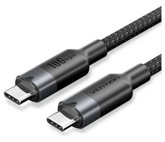 Cable USB 3.2 Tipo-C 5A Vention TRGBH/ USB Tipo-C Macho - USB Tipo-C Macho/ Hasta 100W/ 10Gbps/ 2m/ Negro